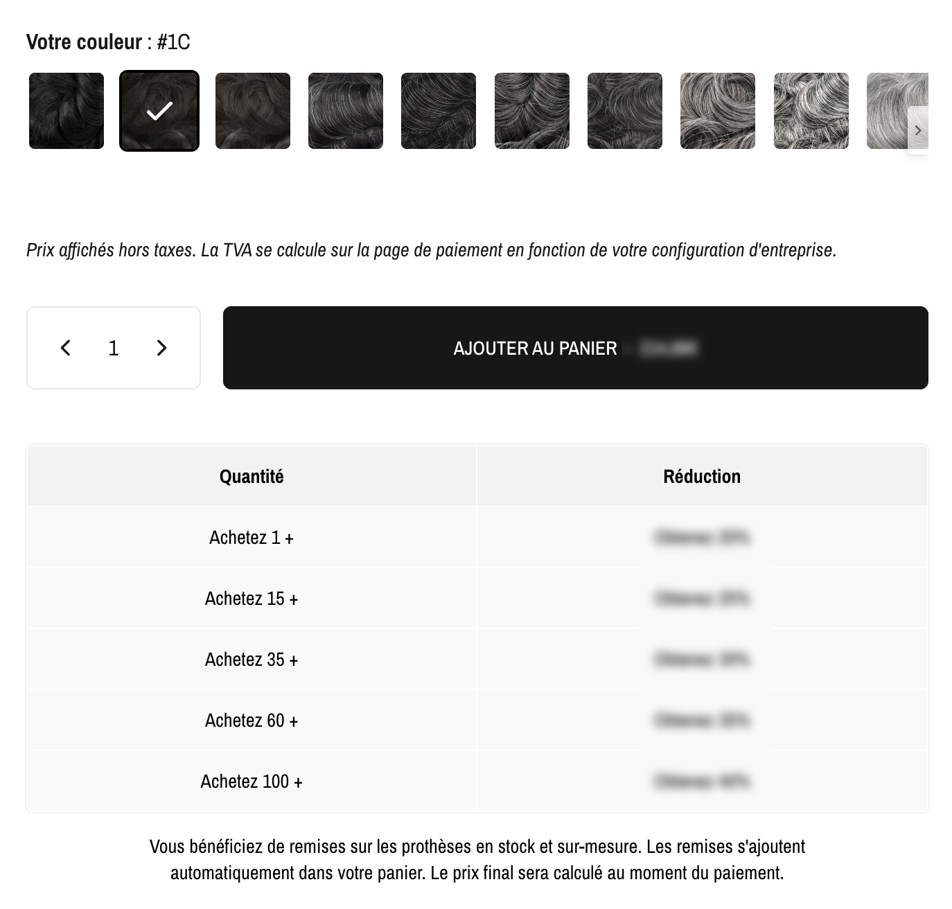 Sur les pages de produits, un tableau de remise est accessible et vous donne un aperçu de vos avantages tarifaires :